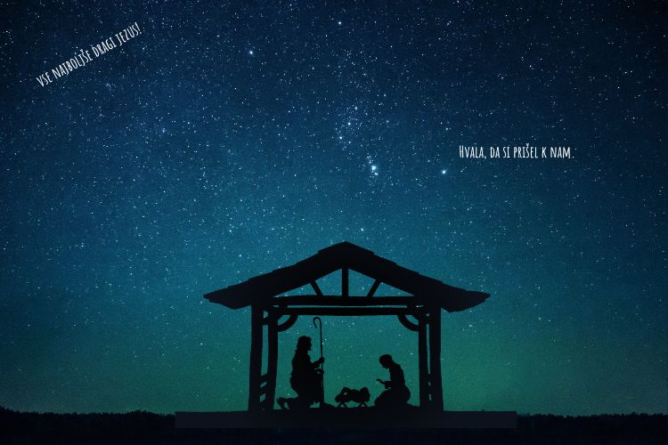 Voščimo vam blagoslovljene in mirne božične praznike. Da bi vam bilo lepo z vašimi najdražjimi in da bi v svojo bližino spustili tudi glavnega slavljenca božiča – Jezusa. Pred 2000 leti je kot majhno dete prišel na ta svet, obrnil tok človeške zgodovine in prinesel luč ter upanje vsakemu človeku. Tudi vam!
