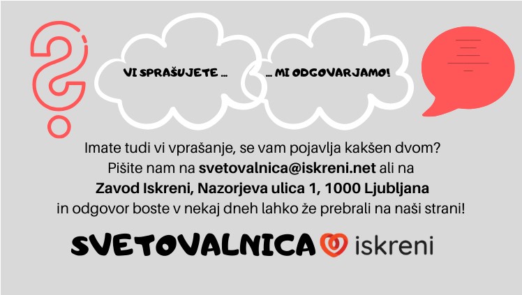 Krasna letošnja novost se mi zdi Svetovalnica Iskreni, v kateri strokovnjaki odgovarjajo na zakonske, starševske in zdravstvene dileme. Kje drugje lahko zastavimo anonimno vprašanje o težavah v spalnici ali spolni vzgoji otrok ter dobimo pronicljiv odgovor, ki se sklada s krščansko etiko?