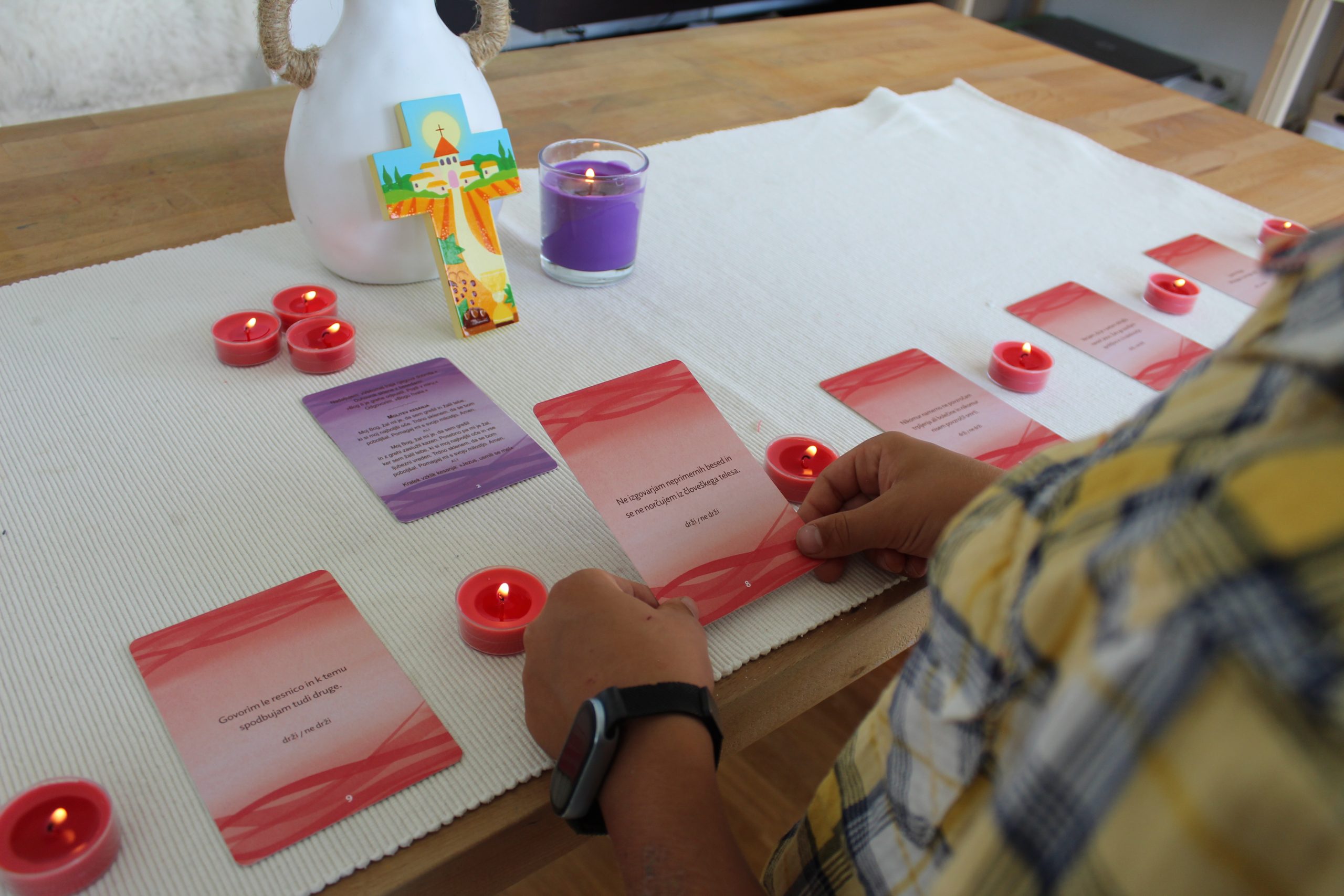 Ker imam v tem obdobju materinstva več časa, imam tudi več možnosti za ustvarjanje. Nekega dne sem si umislila pripomoček za pripravo na zakrament sprave. Poimenovala ga Most prijateljstva, saj nas spoved očisti in postavi v življenje, v odnos z Bogom, drugimi in seboj. Kartice so mnogo bolj priročne za pripravo na spoved kot dolgi seznami za izpraševanje vesti. Lahko jih prilagajamo glede na sposobnosti otroka, lahko jih uporabimo na mnoge načine, predvsem pa kartice pomenijo odnos. Naši otroci lahko le v odnosu spoznavajo sebe, svet in Boga. Ne spreglejmo tega. Bodimo na voljo, bodimo odprti in storimo, kar moramo storiti. In konec dneva lahko priznamo: »Nekoristni služabniki smo; storili smo, kar smo bili dolžni storiti.” (Lk 17,10)