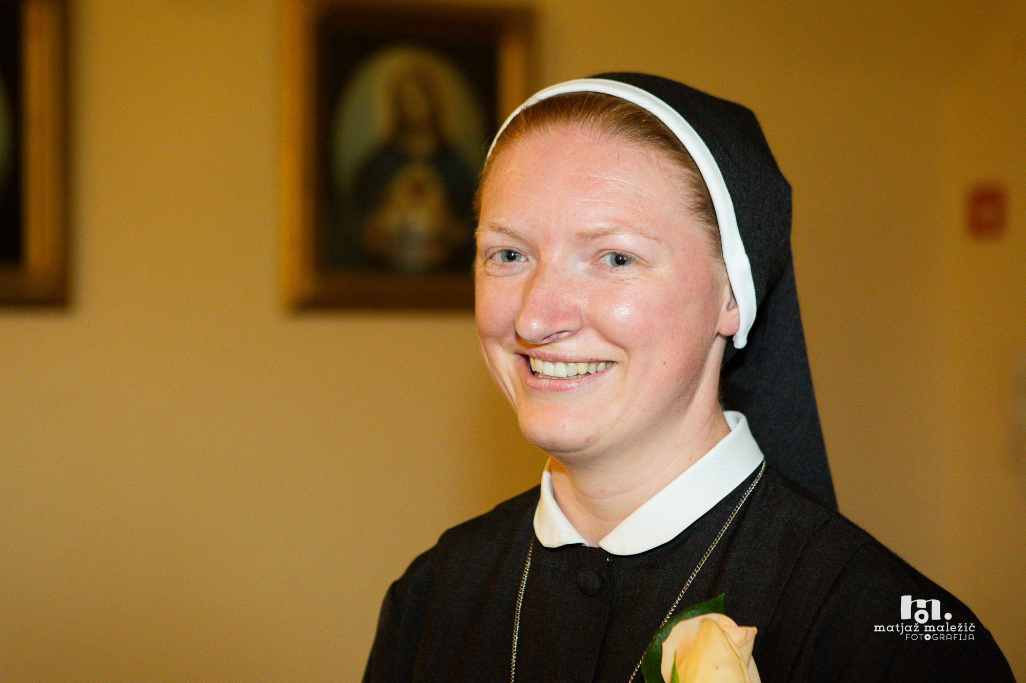 In to so bile sestre, pri katerih sem na koncu pristala. Slovenske sestre. Doma je bila samo ena sestra, ki me je cel obisk samo poslušala. Na koncu sem prijateljici rekla, da k takim sestram, ki so ves čas resne in tiho, jaz ne morem. Ne bomo zdržale skupaj. O njih nisem vedela nič. So me pa povabile, da naj pridem k maši. Zraven samostana je hiša lazaristov, kjer imajo kapelo. Majhna je, ni veliko ljudi, takoj sem se počutila domače. Skratka, nekaj redkega v Kijevu. Nekega dne me je ta »tiha sestra« (ki, zdaj vem, se zna tudi pohecati) povabila, da bi prišla pomagat delat vizitke za prodajo. Prisluženi denar so sestre porabile za delo z brezdomci. Zdelo se mi je lepo in sem prišla. Kasneje me je sestra spet povabila, tokrat na duhovne vaje v tišini. Nisem imela pojma, kaj me čaka. K sreči je trajalo samo tri dni, ker sem jaz res težko tiho. Po tem pa sem imela občutek, da sem bila prvič v stiku s svojo dušo, srcem, s tem, kar želim. Vedno pogosteje sem hodila k sestram in sem ugotovila, da niso tako resnobne, ampak vesele in odprte. Pri družini sem dobila dva tedna dopusta. Za en teden sem šla domov k mami, drugi teden pa sem želela preživeti s sestrami. Ugotovila sem, da mi tak način življenja res ustreza. Preteklih devet mesecev sem izjemno slabo spala. Pri sestrah pa sem to povedala in stvari so se počasi izjasnile. Ko sem poleti prvič sama sebi zares odgovorila na vprašanje, ali naj grem k njim, sem končno spet prespala celo noč. In sem jasno povedala, da želim priti k njim. Ukvarjale so se z brezdomci, kar se mi je zdelo lepo. Oktobra je prišla sestra provincialka in predlagali so mi, da naj se z njo pogovorim in izrazim svojo željo. Tudi otroci pri družini, kjer sem bila, so počasi odraščali in me niso več potrebovali za poln čas. Oktobra sem torej šla na pogovor na Zakarpatje, kjer so odpirali nov samostan. Zelo sem se bala pogovora, ki je bil predviden za zjutraj. Spet nisem spala. Sestra provincialka pa je prišla kar k meni v sobo in rekla – pogovoriva se, da boš lahko spala. Tedaj še nisem znala govoriti slovensko, zato je morala ena od sester pogovor prevajati. Sestra provincialka me je poslušala in rekla: »Prav, kdaj bi torej rada prišla?« – »Kaj ne boste to vi povedali?« – »Ne, ti se odločaš.« In sem izbrala praznik Vseh svetih.